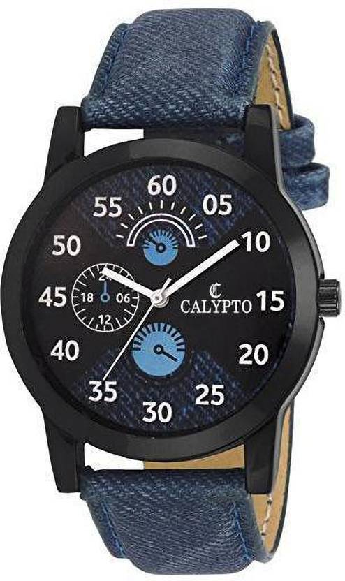 Dial Color - Blue & Black, Strap Color - Denim Blue, Case Shape-Round, Back Material- Stainless Steel, Display Type - Analog
