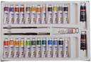Pack contents: 24 shades of 9ml, 20ml Titanium White shade, 20ml acrylic gel retarder, 20ml acrylic retarder medium, 2 artist brushes, Pigment rich and excellent colour strength, smooth consistency, Great coverage and Excellent durability