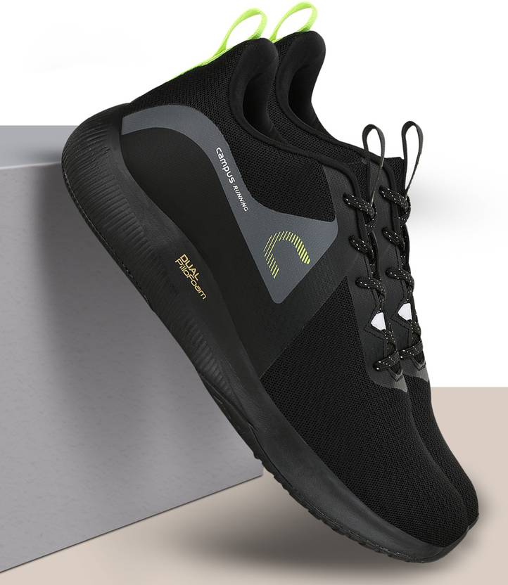 Add a spark of style to your running sessions with this pair of running shoes from Campus. The Dual-Pillofoam Tech provides ultra comfort and durability, The superior quality Mesh upper provides optimum cushioning with utmost breathability and comfort while the Phylon sole ensures a good grip and is anti-skid and is resistant to abrasion. Team it with a pair of track pants and a T-Shirt for a sporty look.