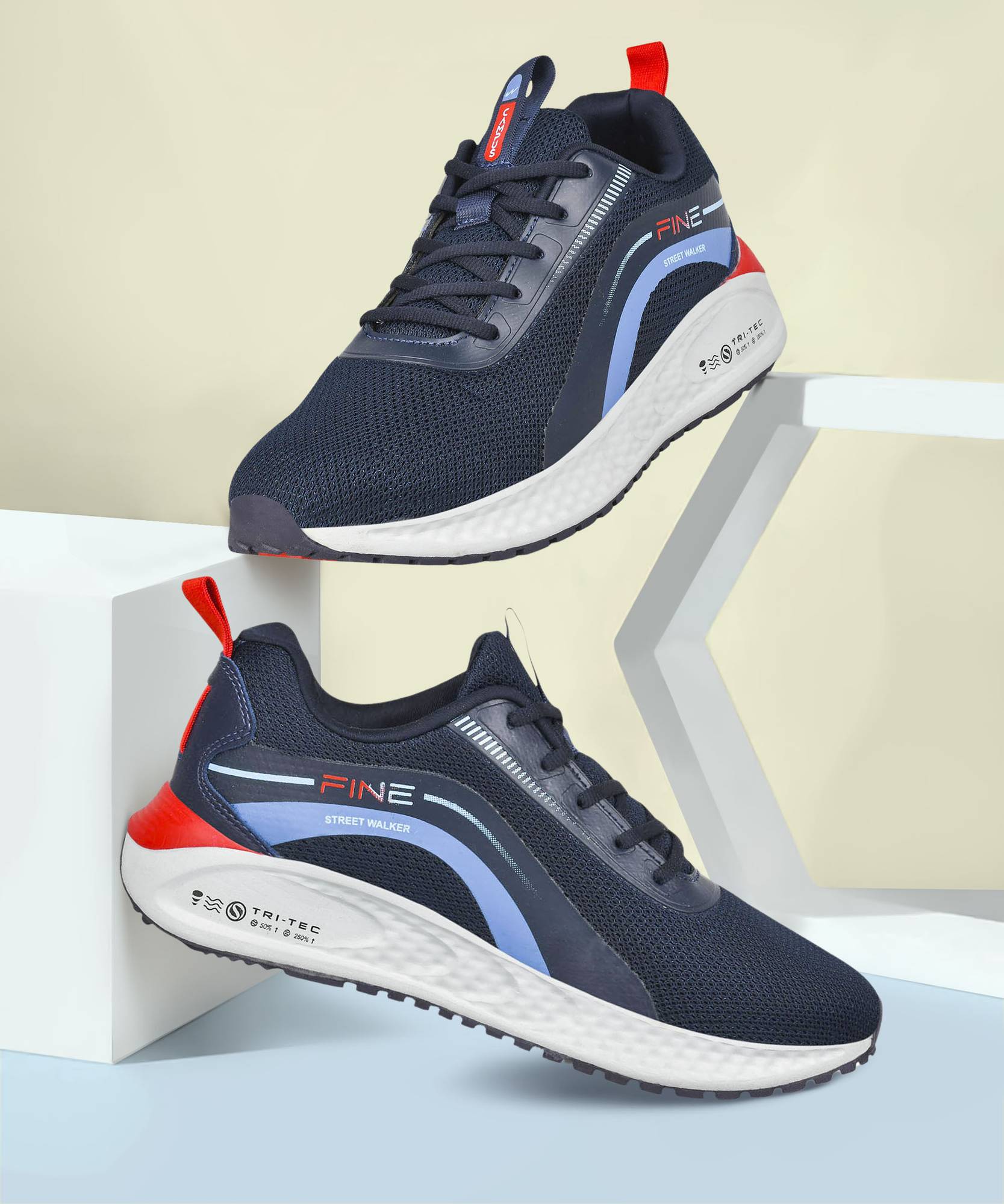 Style up and own the city with the supreme streetwalkers from CAMPUS. The coalescence of Red & Blue has always been on our favorite list and when you combine it with impressive design; then the outcome is surely FINE. Taking these shoes to a whole new level, the installed TRI-TEC sole & the Memory Tech Lite insole makes for a cozy base for you to walk on.