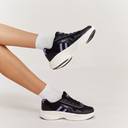 Slay everyday with the impressive HALL shoes for women! These chunky wonders boast a Mesh upper that's like a cozy hug for your feet, letting your skin breathe and groove in comfort. Lace-up closure? Oh yes, it's like giving your feet a snug VIP pass to everyday affairs - secure and ready for action! Now, let's talk about the Memory Foam insole - it's like a plush red carpet for your feet, offering custom cushioning that's the envy of every step. These bold black and purple women's sneakers are super stylish and perfect for your everyday runway - whether it's conquering the streets or strutting through the halls.
