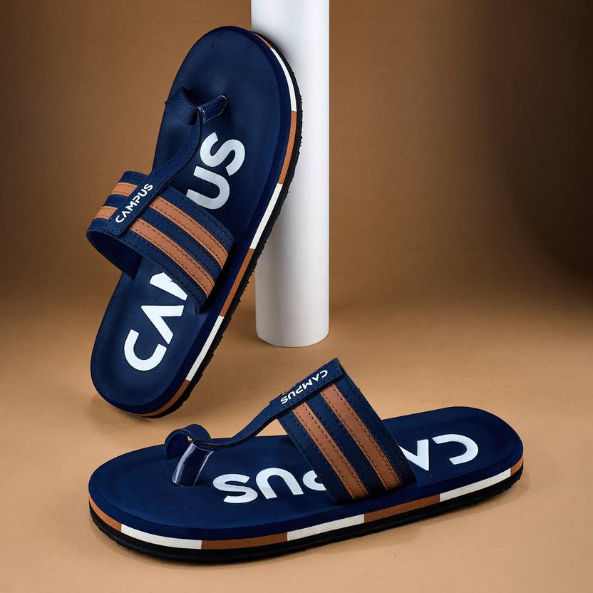 The Campus GC-1087 Men's flip-flops will change how you look at slippers. In an ultra-chic shade of navy, these flip-flops for men combine comfort with good looks! Featuring a premium rexine upper and a durable rubber outsole with anti-skid sole design, they offer sturdy steps with traction. The EVA insole cushions every step, making them perfect for everything from lazy days, quick errands, fun coffee runs and what not!
