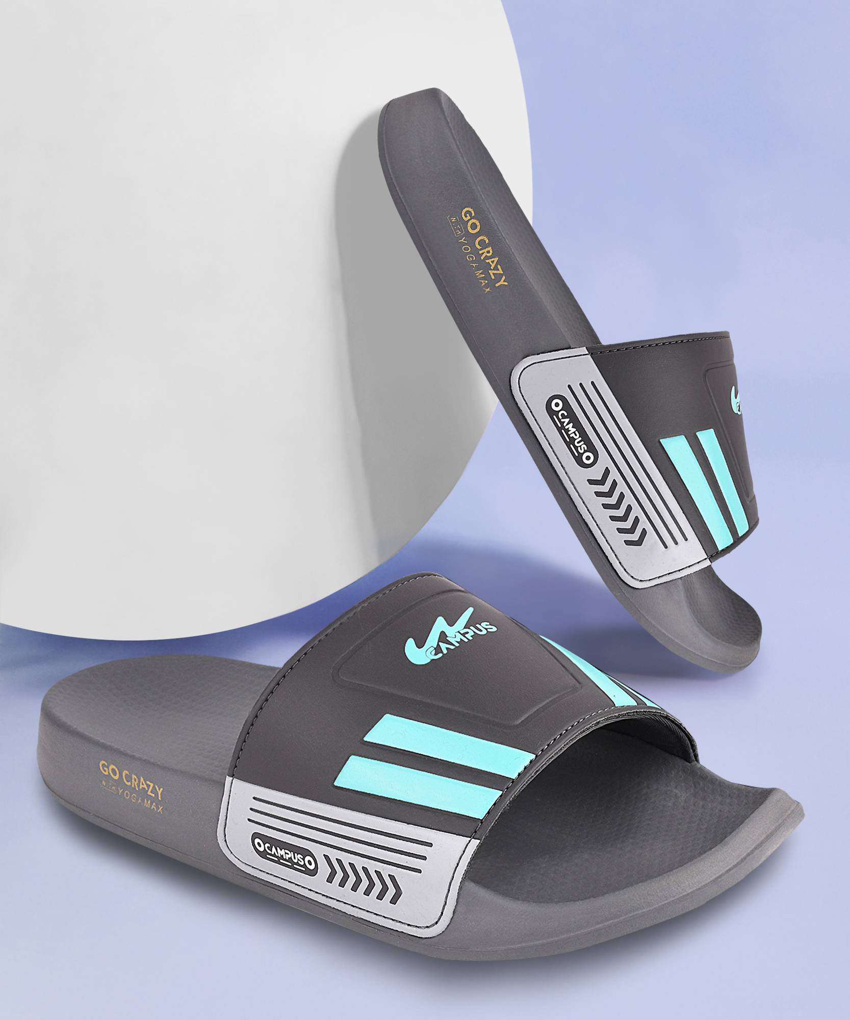 Looking for the ultimate summer footwear? Look no further than Campus men's sliders. Designed for comfort and style, these sliders are the perfect choice for a laid-back summer look. The dark grey slides are elevated by adding sea green patterns on top. Get your go-to summer shorts & t-shirt out, pair them with these cool slides, and find the perfect outfit to match your personal style.