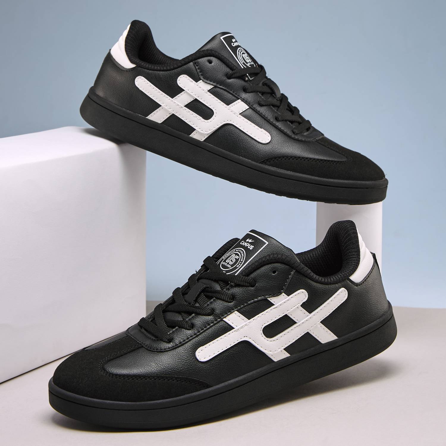 Make a bold statement with Campus ROAR black and white sneakers for men! Built with a sturdy synthetic leather upper, these sneakers ensure durability and a sleek finish that pairs easily with everyday outfits. The lace-up closure delivers a secure fit, while the cushioned insole provides lasting comfort for long hours of wear. Designed with a lightweight and flexible outsole, ROAR sneakers support smooth movement, making them perfect for walking, casual outings, or daily use. With their striking black and white design, they combine sporty style with dependable comfort.