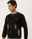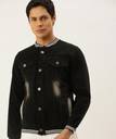 Campus Sutra Men's Dark-Washed Black Regular Fit Denim Jacket For Winter Wear | Collared Neck | Full Sleeve | Buttoned | Casual Denim Jacket For Man | Western Stylish Denim Jacket For Men