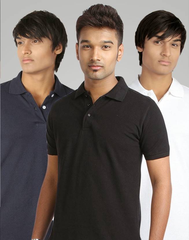 CAMPUS SUTRA Pack of 3 Men Solid Polo Neck Cotton Blend White, Blue, Black T-Shirt