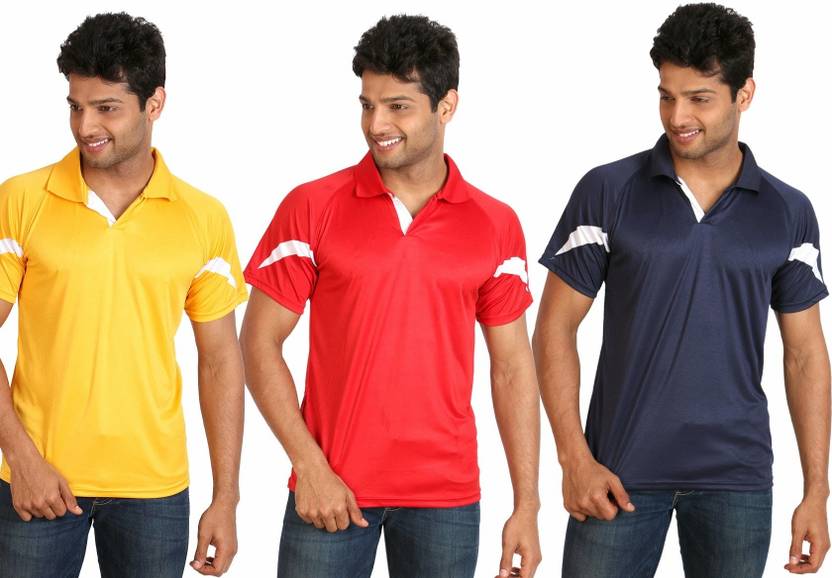 Pack of 3 Men Solid Polo Neck Red, Blue, Yellow T-Shirt