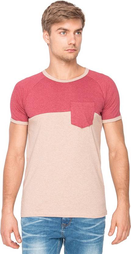 Men Solid Round Neck Cotton Blend Red, Beige T-Shirt