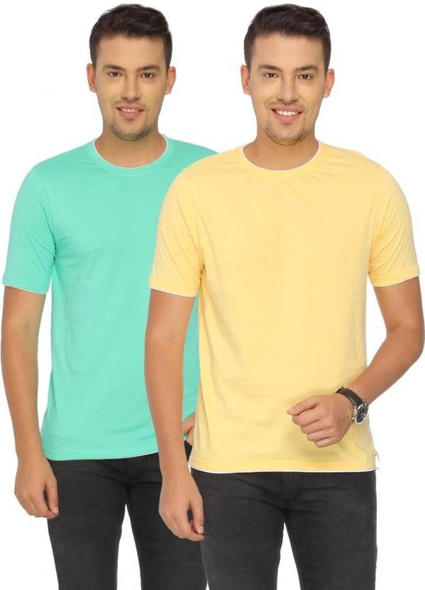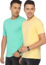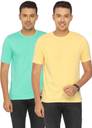 Pack of 2 Men Solid Round Neck Cotton Blend Green, Yellow T-Shirt
