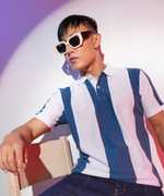 CAMPUS SUTRA Striped Men Polo Neck White T-Shirt