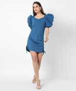 CAMPUS SUTRA Women Fit and Flare Blue Midi/Calf Length Dress