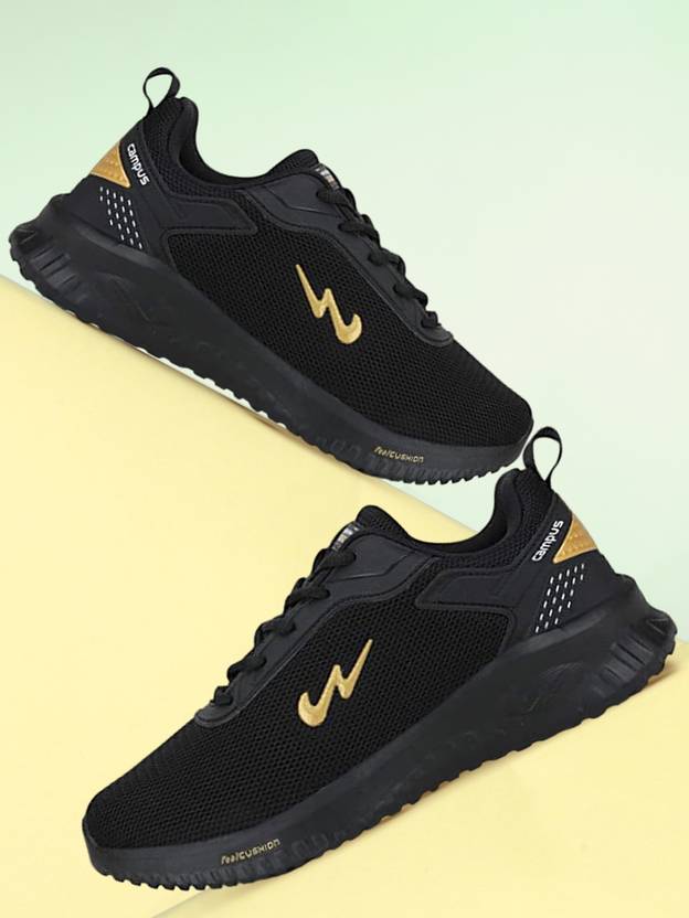 A perfect blend of performance and comfort, this pair of black running shoes from Campus has been designed to ensure both comfort and stability. It features a mesh upper that ensures to keep your feet relaxed. This pair of lace shoes are durable, light in weight and comfortable to wear while the phylon sole further provides better traction on different surfaces.
