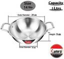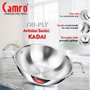 Camro Triply Artisian Kadhai 14 no Induction Friendly Kadhai 29 cm diameter 3 L capacity (Stainless Steel)