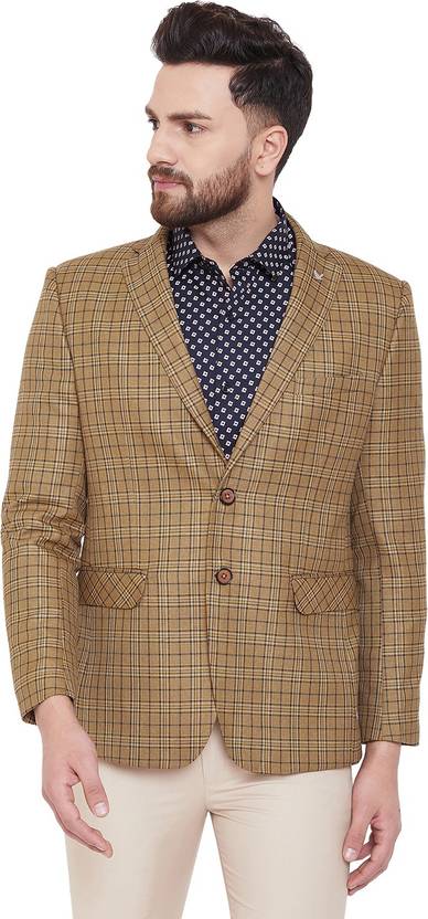 Canary London Men Checkered Single Breasted Casual Blazer (Beige)