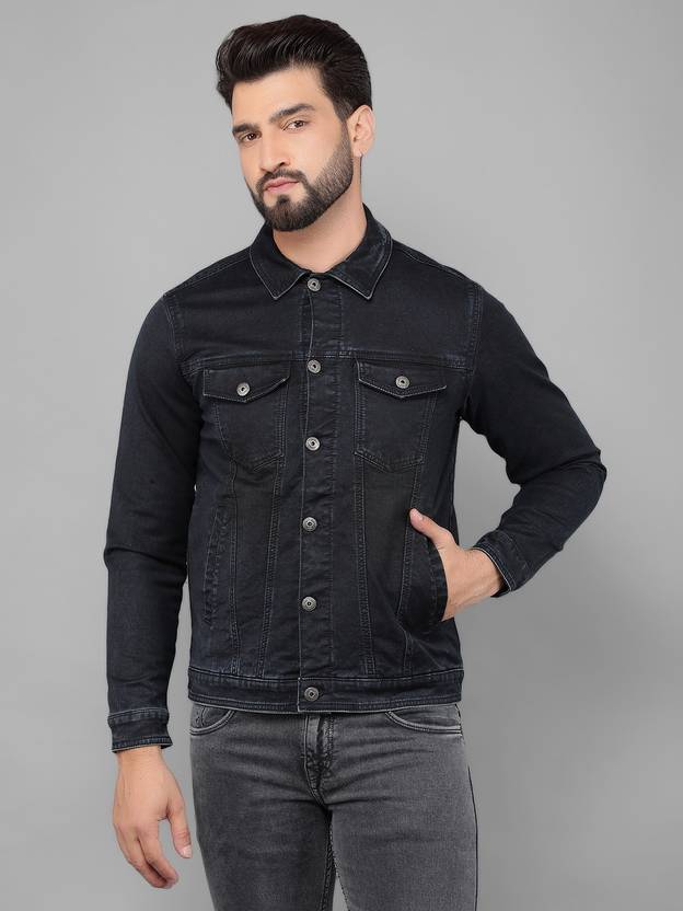 Canary London Dark Blue Solid Slim Fit Denim Casual Jacket
