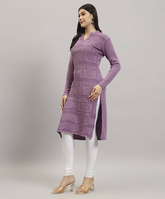 CANBLAR Women Solid Straight Kurta (Purple)