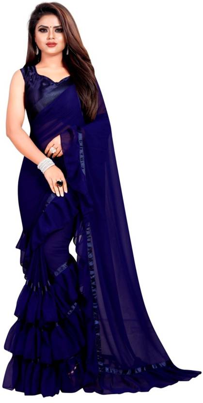 CANDEL FASHION Solid/Plain Bollywood Georgette Saree (Dark Blue)