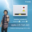 This stabiliser works with all types of air conditioners, window AC and inverter AC with a capacity of up to 2.5 ton.