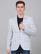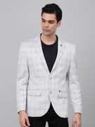 Men Checkered Single Breasted Casual Blazer (Beige)