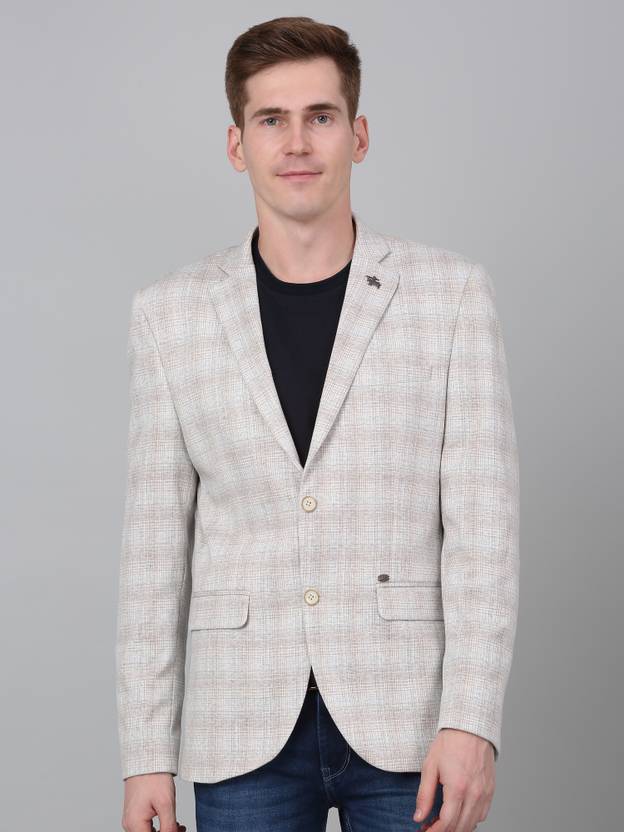 CANTABIL Checkered Single Breasted Casual Men Blazer (Beige)