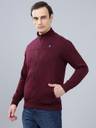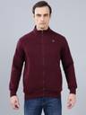 Cantabil Men Wine Solid Full Sleeves Banded Collar Neck Sweatshirt