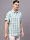 CANTABIL Men Checkered Casual White, Light Green Shirt
