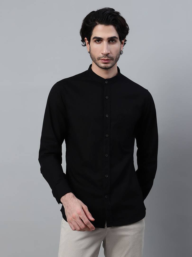 CANTABIL Men Solid Casual Black Shirt