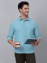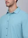 Cantabil Men's Teal Blue Self-Design Full Sleeve Stretchable Shirt