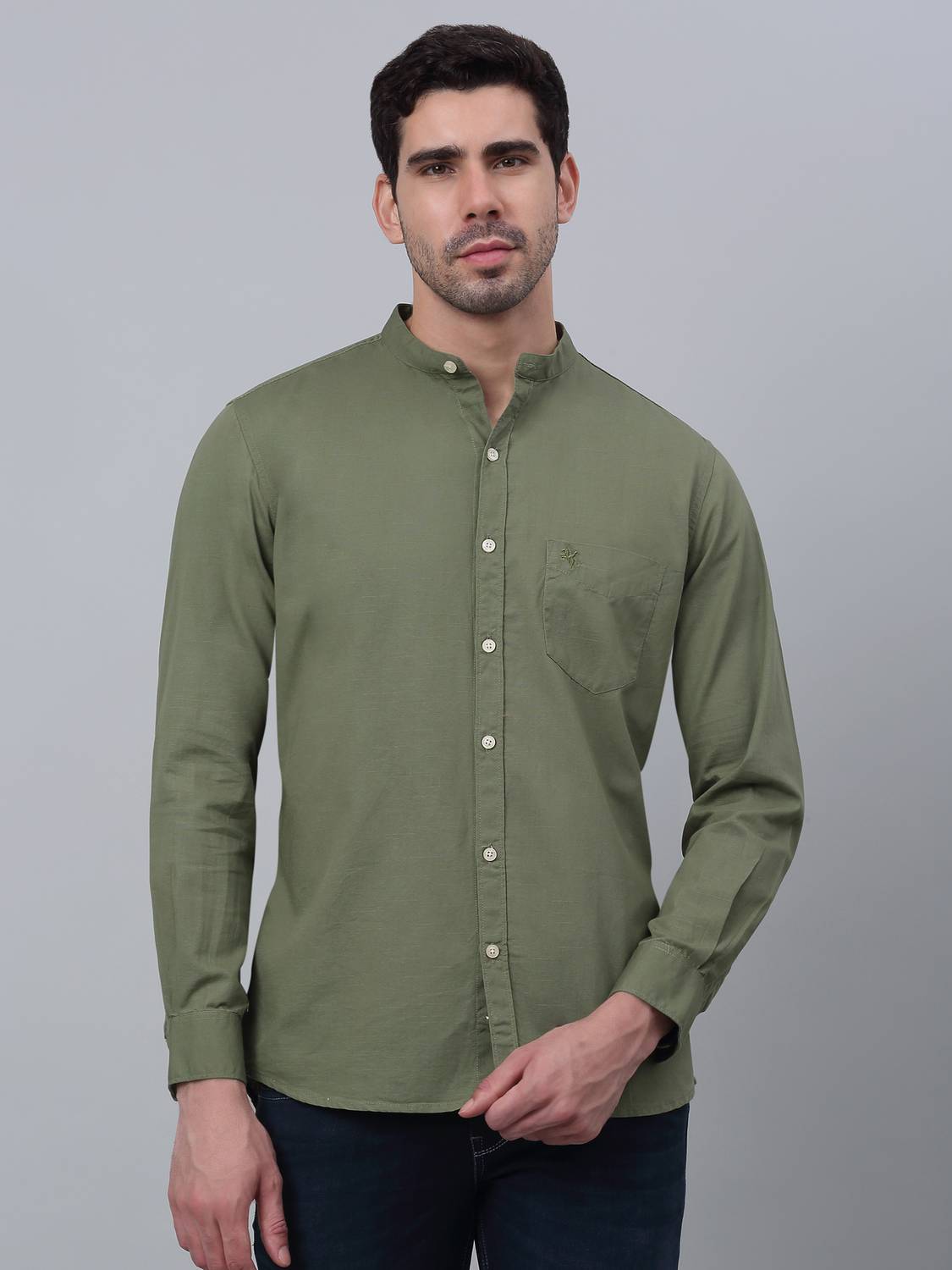 Cantabil Cotton Solid Full Sleeve Regular Fit Olive Casual Shirt for Men with Pocket