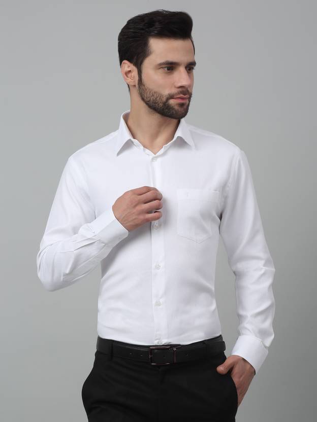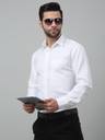 Cantabil Men's White Self Design Full Sleeve Formal Shirt with Pocket