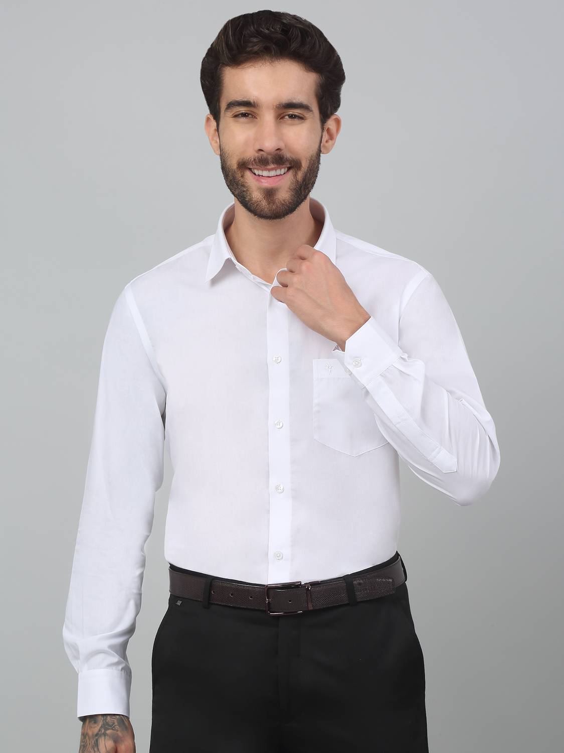 Cantabil Men's White Solid Full Sleeve Formal Shirt