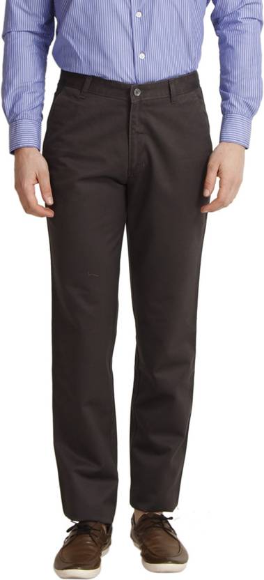 Mouse Wrinkle Free Casual Chino Men Slim Fit Brown Cotton Blend Trousers