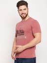 Men Printed Round Neck Cotton Blend Pink T-Shirt
