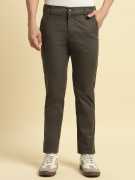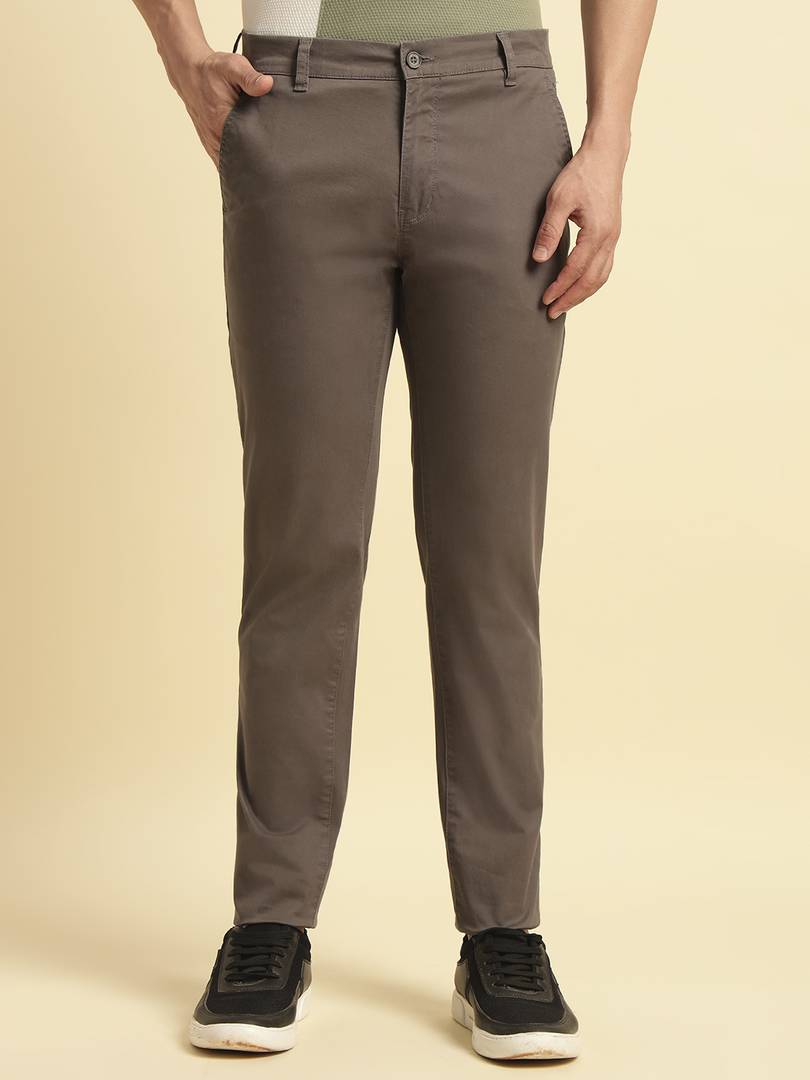 Men Regular Fit Grey Cotton Blend Trousers