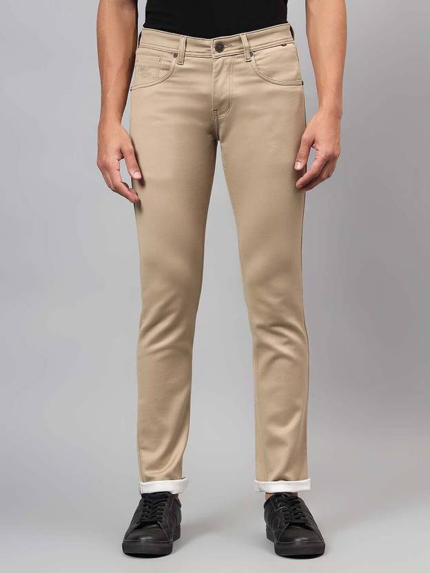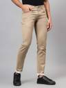 Cantabil Men Khaki Solid Jeans Flat Front Mid Rise Jeans