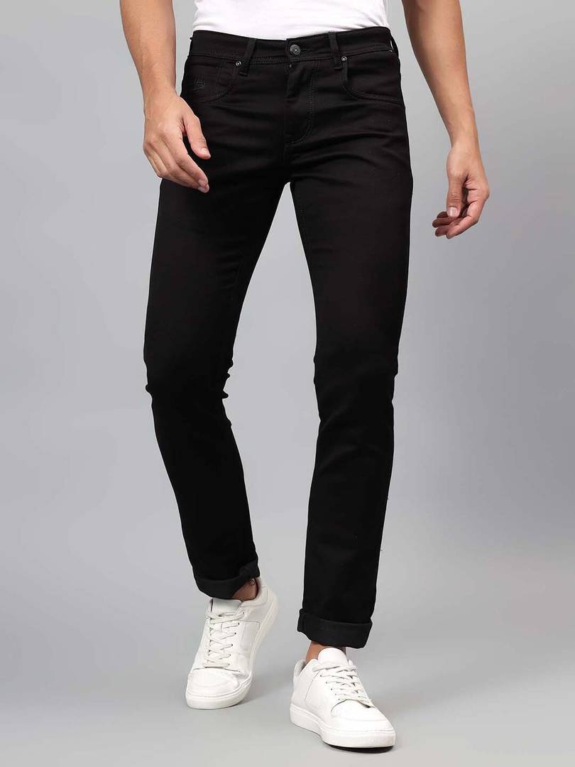 Cantabil Men Black Solid Jeans Flat Front Mid Rise Jeans