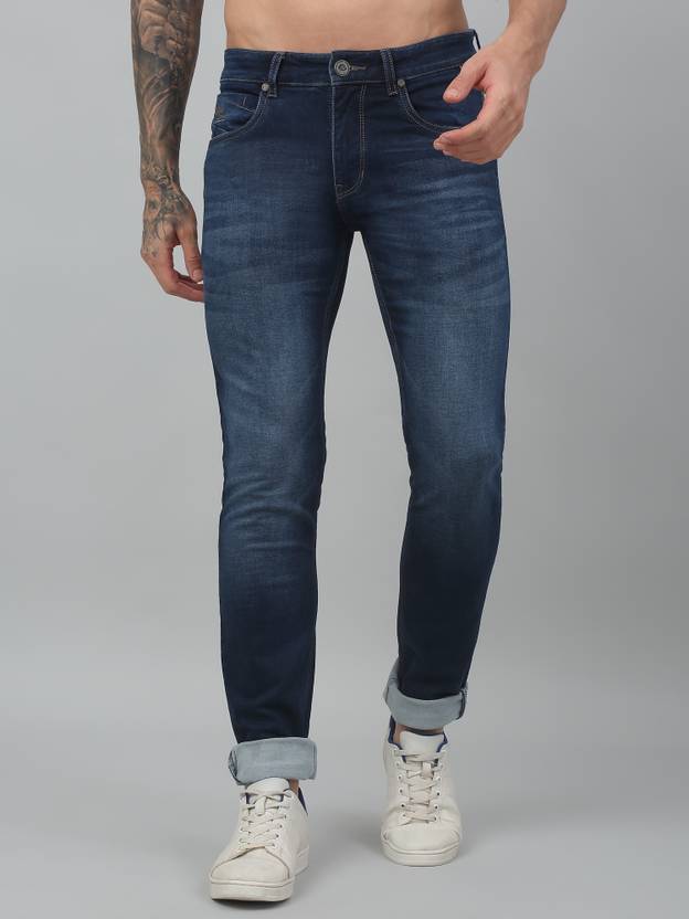 Cantabil Men's Blue Solid Mid Rise Full Length Stretchable Jeans