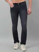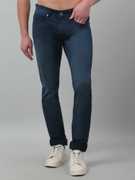 Cantabil Men's Blue Solid Mid Rise Full Length Stretchable Jeans