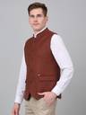 Cantabil Men Self Design Orange Mandarin Neck Waist Coat