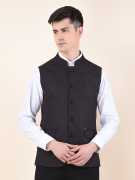 Men's Band Collar Poly Viscose Stylish & Comfortable Waist Coat - Upgrade your wardrobe with this trendy and stylish men's band collar waist coat, designed for all-day comfort and effortless fashion. Crafted from a premium wool blend this waist coat offers a soft, breathable feel that keeps you cool and comfortable in every season. Regular Fit – designed to complement all body types, Sleeveless – ideal for casual and semi-casual settings. Band Collar – adds a touch of sophistication, Self Design Pattern – versatile and easy to pair with any outfit. Fast color, durable, and low- maintenance fabric. Whether you're heading out for a casual meet-up or looking to make a statement with every day wear, this breathable and stylish mandarin collar has got you covered.