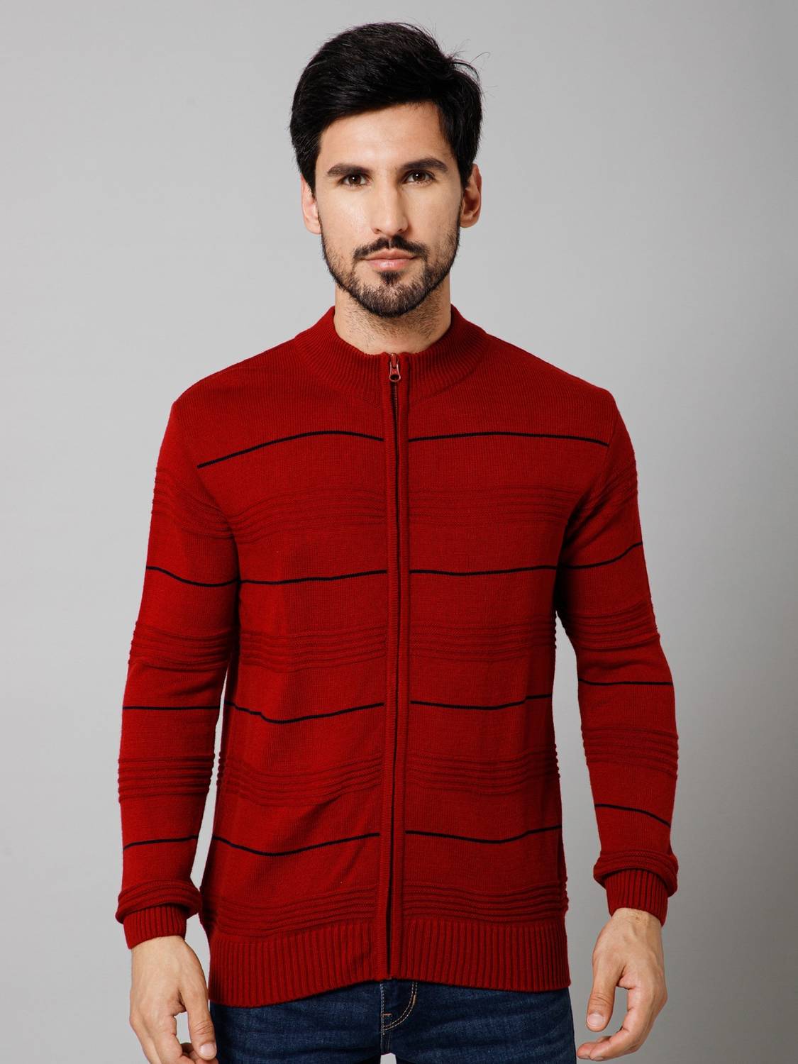 CANTABIL Self Design Turtle Neck Casual Men Red Sweater