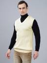 CANTABIL Self Design V Neck Casual Men White Sweater