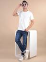 Men Slim Mid Rise Dark Blue Jeans