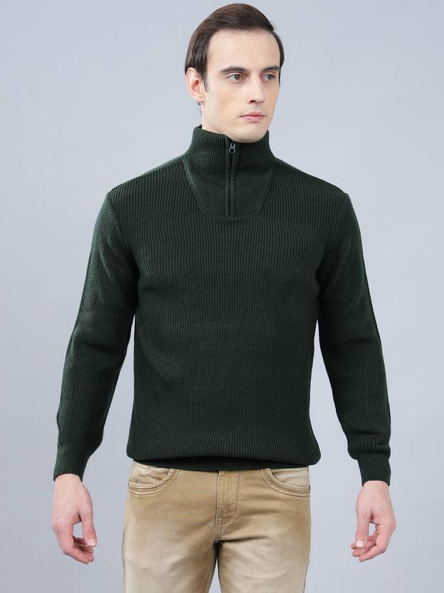 CANTABIL Solid Mandarin Neck Casual Men Dark Green Sweater