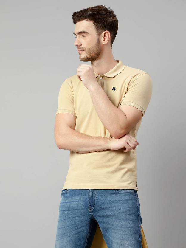 CANTABIL Solid Men Polo Neck Beige T-Shirt