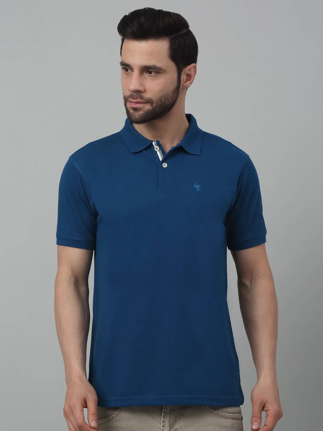 CANTABIL Solid Men Polo Neck Blue T-Shirt
