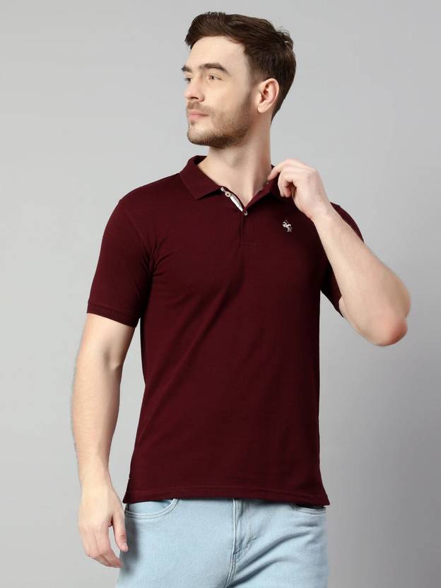 CANTABIL Solid Men Polo Neck Maroon T-Shirt