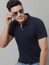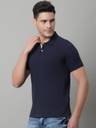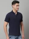 CANTABIL Solid Men Polo Neck Navy Blue T-Shirt