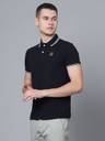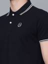 CANTABIL Solid Men Polo Neck Navy Blue T-Shirt