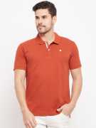 CANTABIL Solid Men Polo Neck Orange T-Shirt